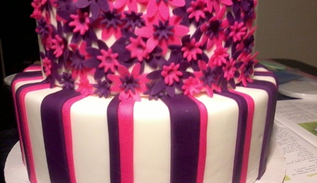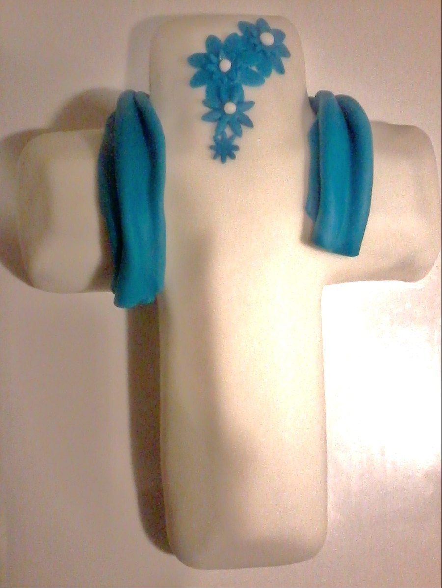 Cake for church event. White fondant with Blue fondant cloth and flowers.