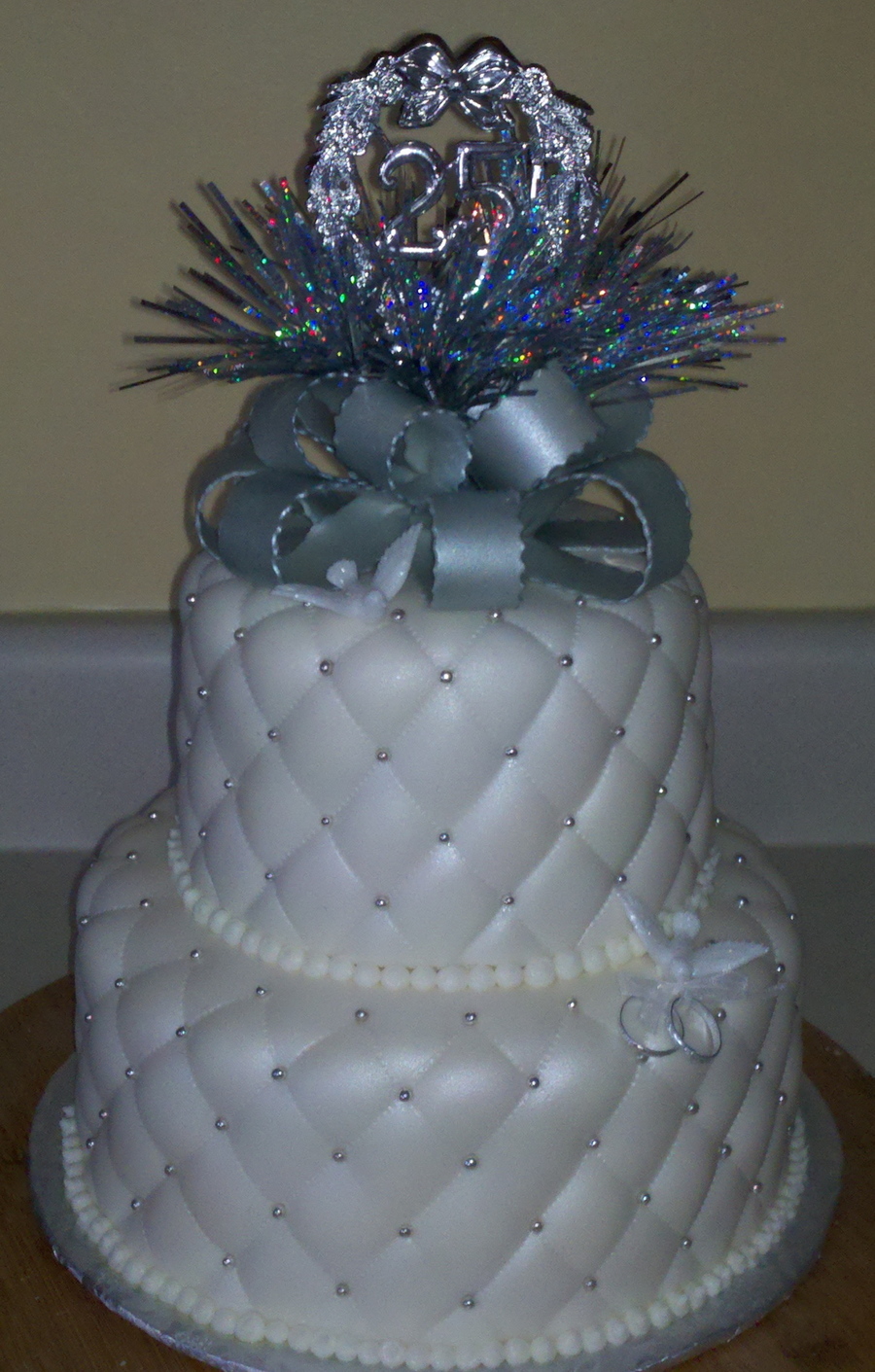 I love the quilting tool. This is an all yellow cake with buttercream icing covered in MM fondant. The bow is fondant and it has silver dragees. Such an easy cake to do and the results are so pretty!! Thanks for looking