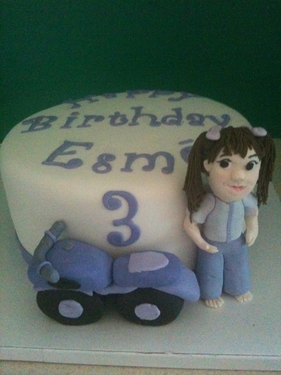 8" fondant covered cake with sculpted motorcycle and figure.