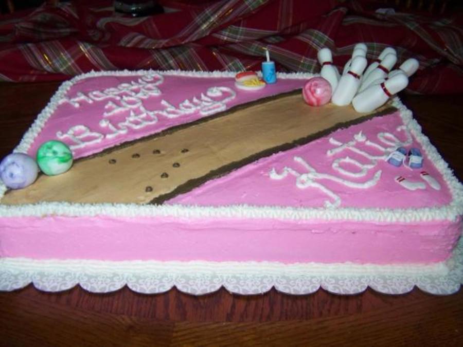 I did this for a lil girl at church that is being raised by her grandma,and the party was at the bowling ally,and so thats what she wanted...i had fun with all my lil fondant sculptures on it
