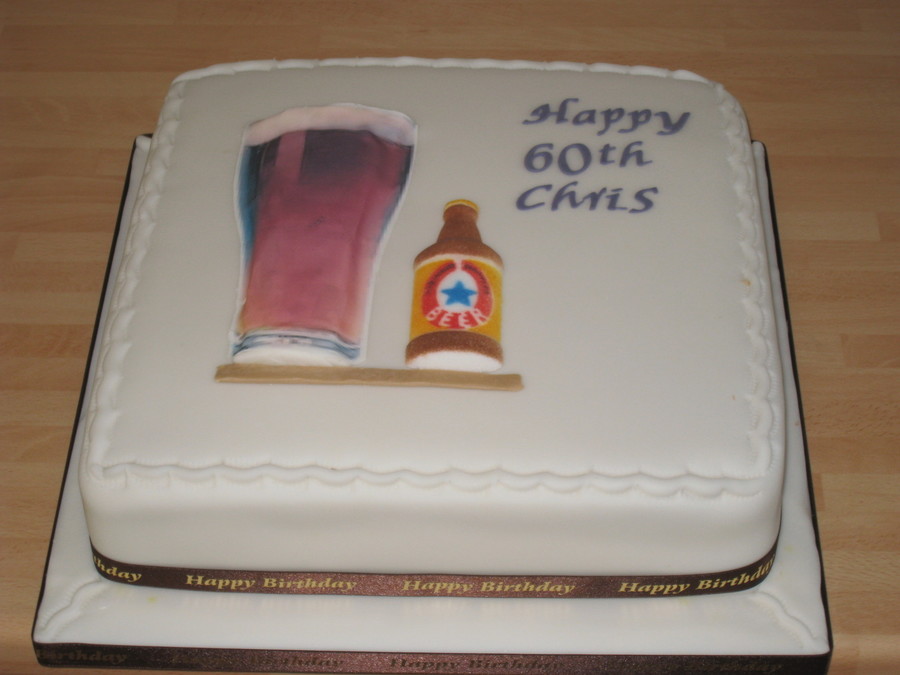 vanilla sponge & filling, with fondant beer glass & bottle