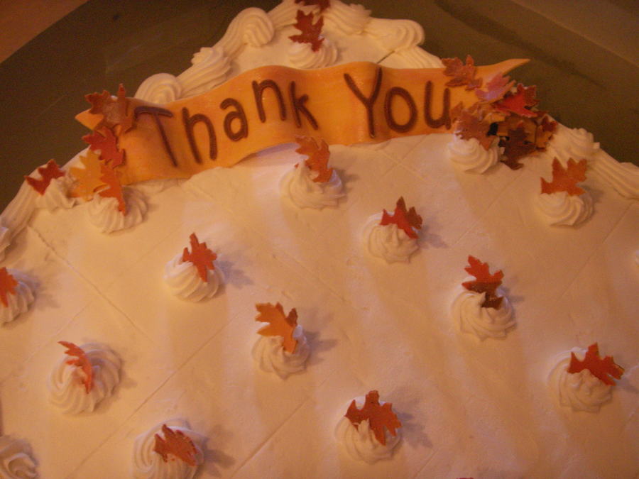 Made for teachers for Fall Parent Teacher Conferences. Double Chocolate Brownie Cake with BC frosting. Leaves and banner are gum paste.