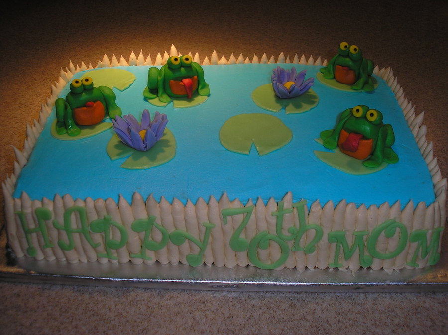 MMF frogs (snaps to the Play-doh website for the design), lily pads, letters and flowers. Everything else is butter cream.