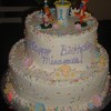 this cake was my first 2 tier cake. when I made this cake I had no idea how to make a stacked cake I didn't even know what dowels were, boy was I lucky that the top tier did not crush the bottom. Thankfully I have a little bit experience now.