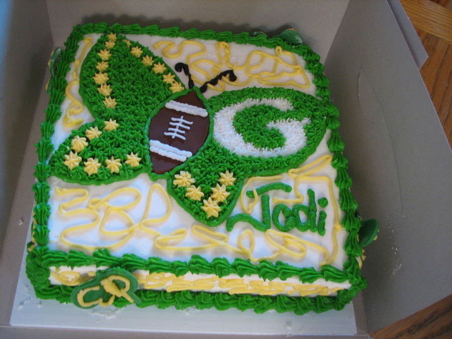 My cousin's wife LOVES butterflies and the Green Bay Packers. For her 40th birthday she got a tattoo of a butterfly with the Packers logo - so I made the cake to match it.
