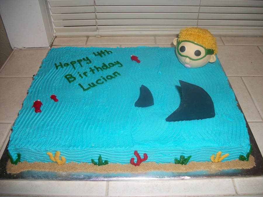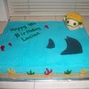 Covered with Bc. Boy is RCT covered with fondant shark fins are chocolate and fish are BC.