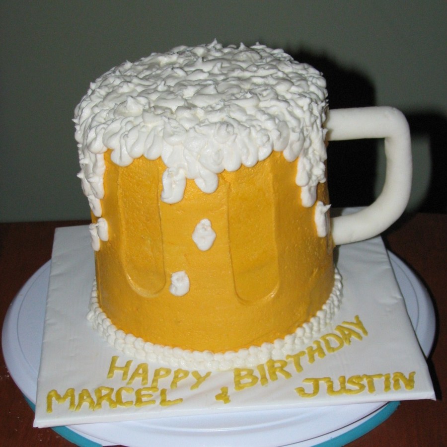 Inspired by MANY of the wonderful beer mug cakes here on cc. The birthday boys LOVED it. Vanilla pound with vanilla buttercream