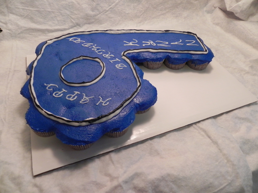 Made this for one of my hubby's co-workers grandson. She picked the colors and design.This actually took me a little longer to make and it was a little more difficult than a sheet cake, IMO. The cupcakes were chocolate and they were covered in a crusting creme cheese icing. They were really yummy.
