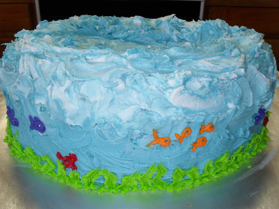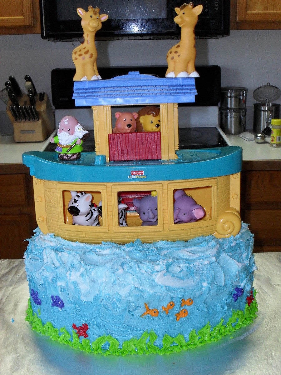 Friend asked for an ocean cake to put Noah's Ark on. I did leard it takes lots of frosting ot make waves. TFL