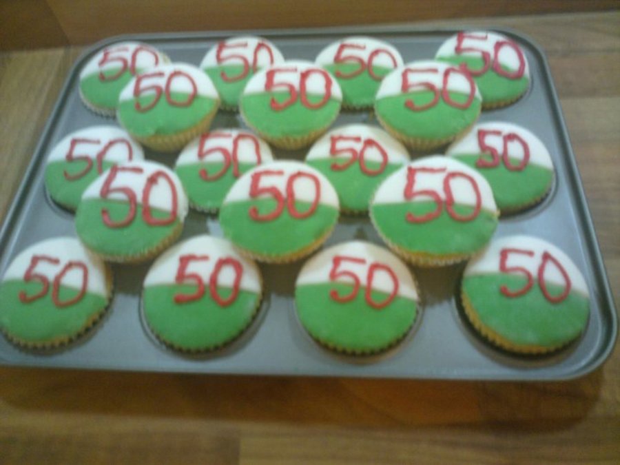 50th birthday cup cakes.. colours of the welsh flag in wales UK