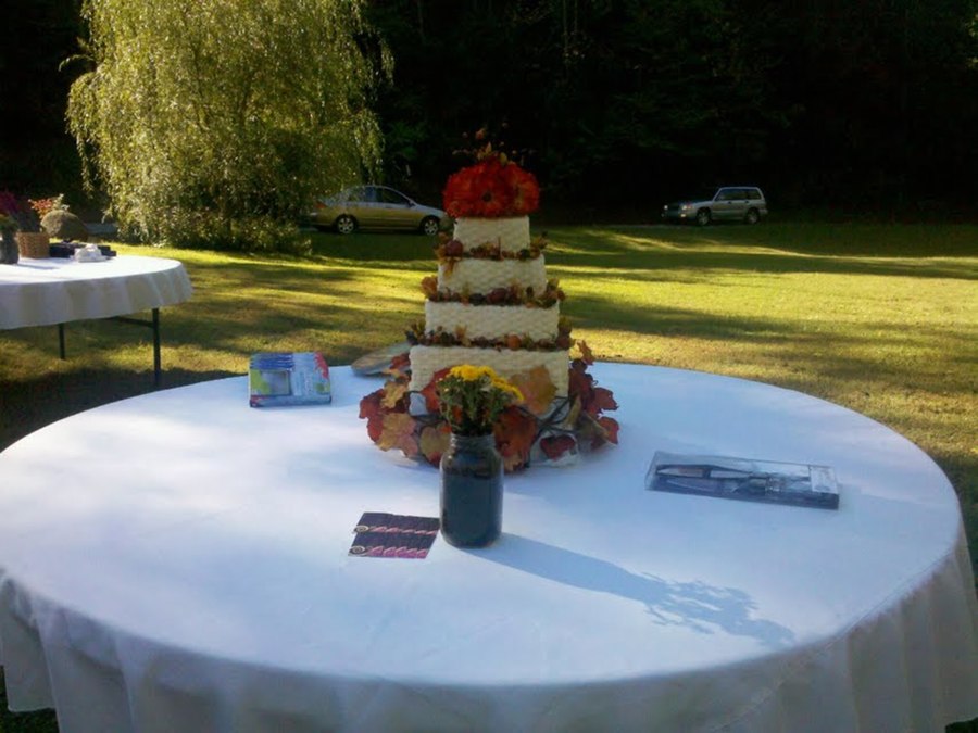 Outdoor wedding in Oct. white cake with buttercream basket weave with simple fall decorations! I loved making this cake and the bride and groom loved it as well :)