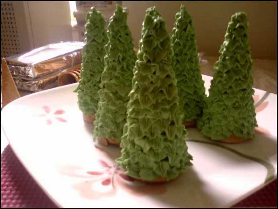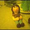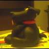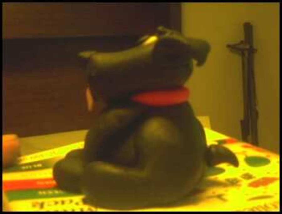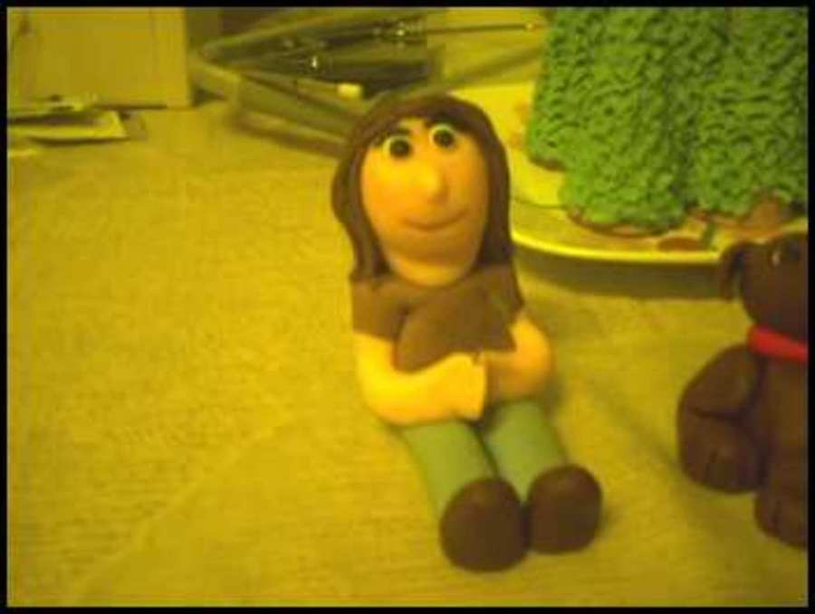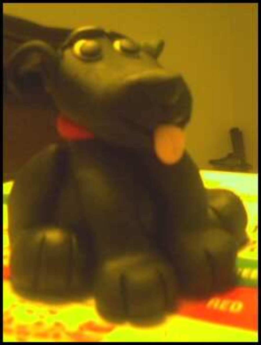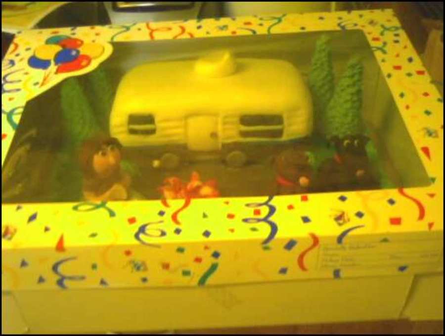 It was a yellow cake. the 2 dogs were made of fondant, The woman was also made of fondant. The trees were made with ice cream cones and royal icing :) sorry the only picture I took of it was when it was in the box..
