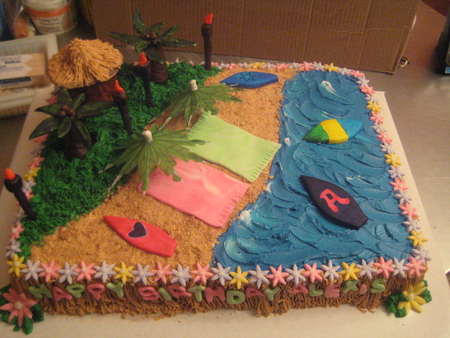 11 X 15 covered in BC. Fondant accents and modeling chocolate. Thanks ccer's for the inspiration.