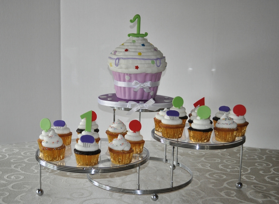 My first giant cupcake, this was more work that I thought it would be... but it cake out okay (I think ;-) ) classic chocolate cake, little cupcakes are chocolate and yellow cake. TFL.