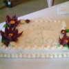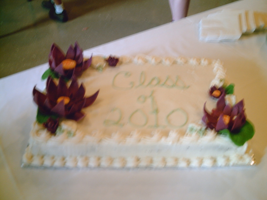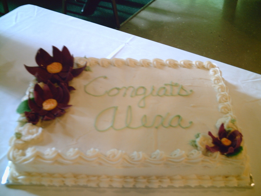 this is a half sheet cake frosted in buttercream. The flowers are made of choco clay