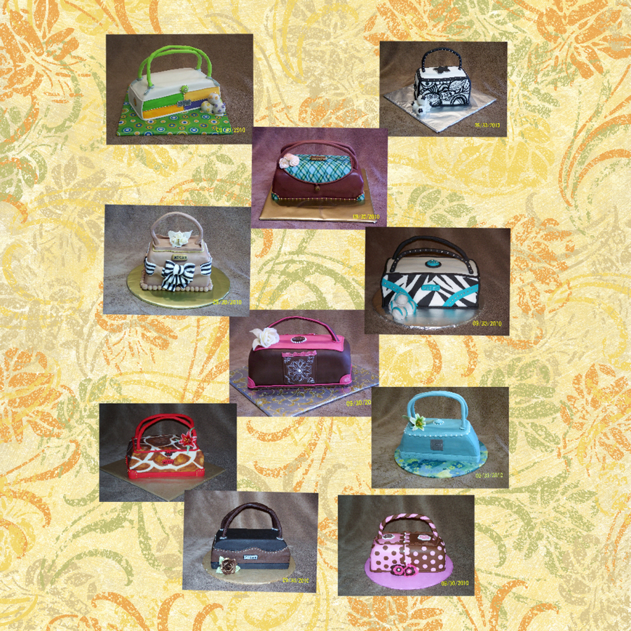 Cakes made from 10" squares. All covered in fondant with chocolate clay flowers. Were for a Miche bag conference.