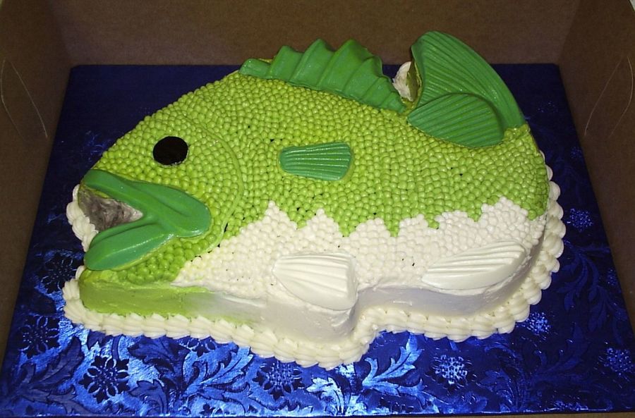 This cake was made with the CK Pantastic pan. Never used the plastic pans before but it worked great. The "scales" are buttercream and the fins, tail and lips are candy melts molded in the pan. It was for my brother's b-day and he's hoping it will bring him good luck next time he goes fishing!