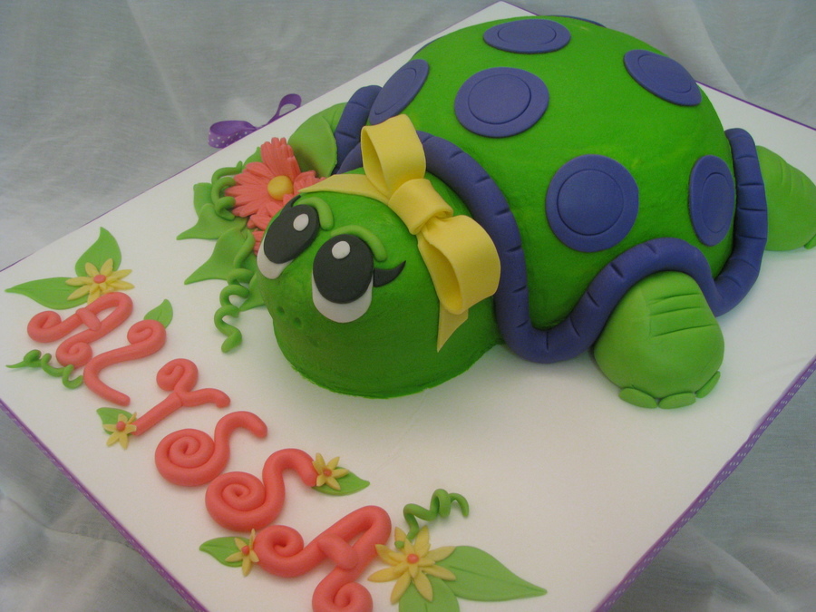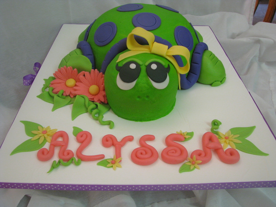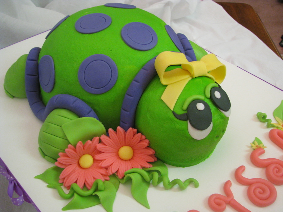 This cake was made for a girls 9th birthday. Her uncle always calls her turtle...so her mom wanted a turtle cake.