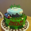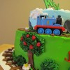 This is a 2 tier cake with chocolate chip pound cake, orange butter cake on the top tier. Thomas toy used.