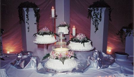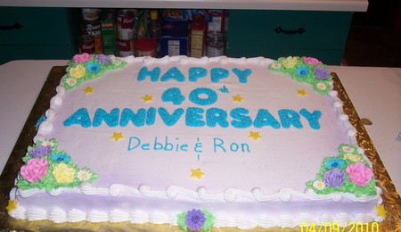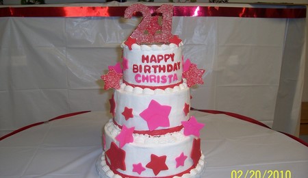 8" round on top of 12" round cake covered in chocolate buttercreame and accented with fondant circles and dots. Bow is made out of fondant and brushed with pearl dust. Baylins name is made from fondant. Animals are plastic.
