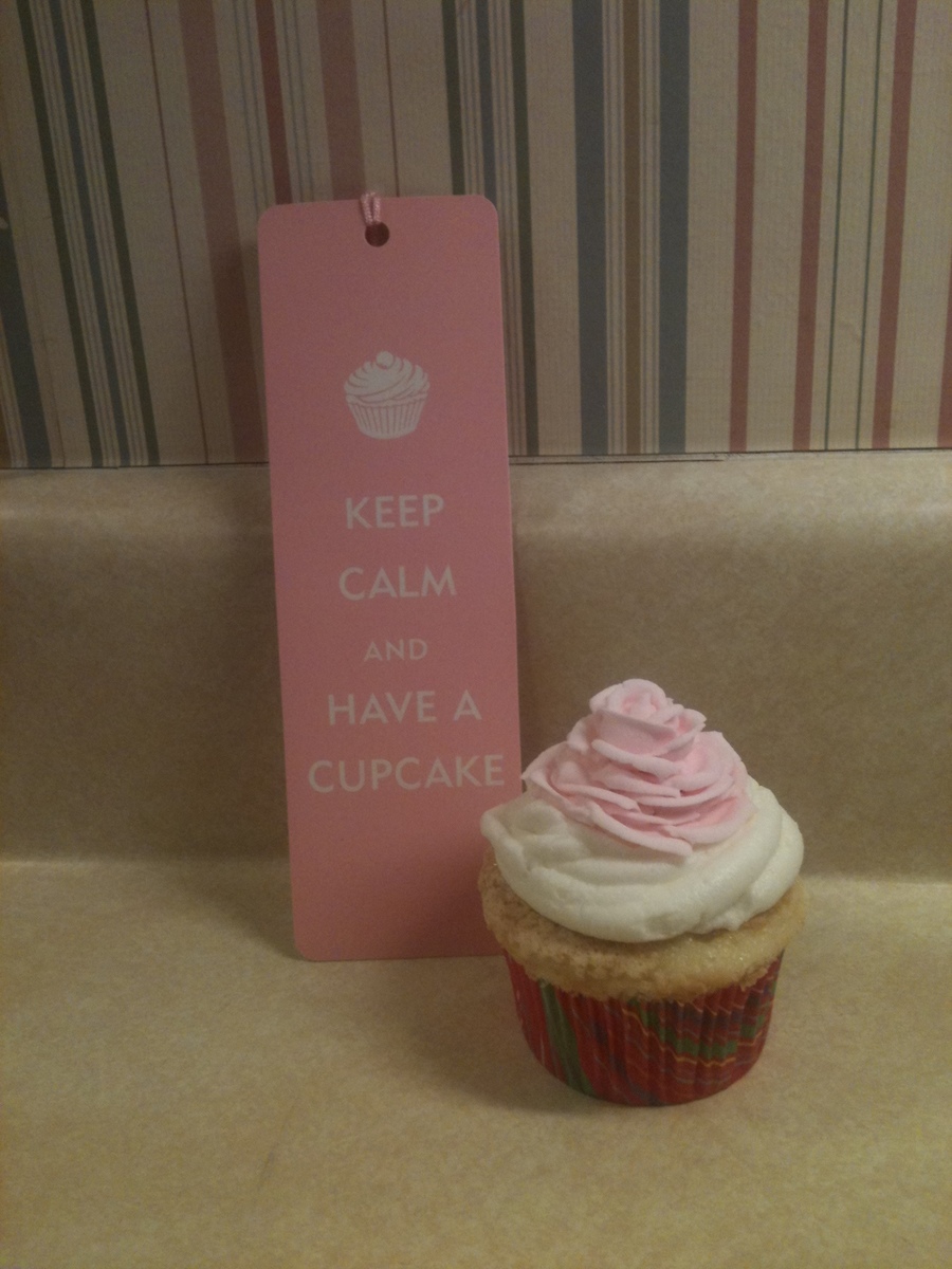 A vanilla cupcake with caramel filling topped with vanilla buttercream alongside my favorite bookmark!