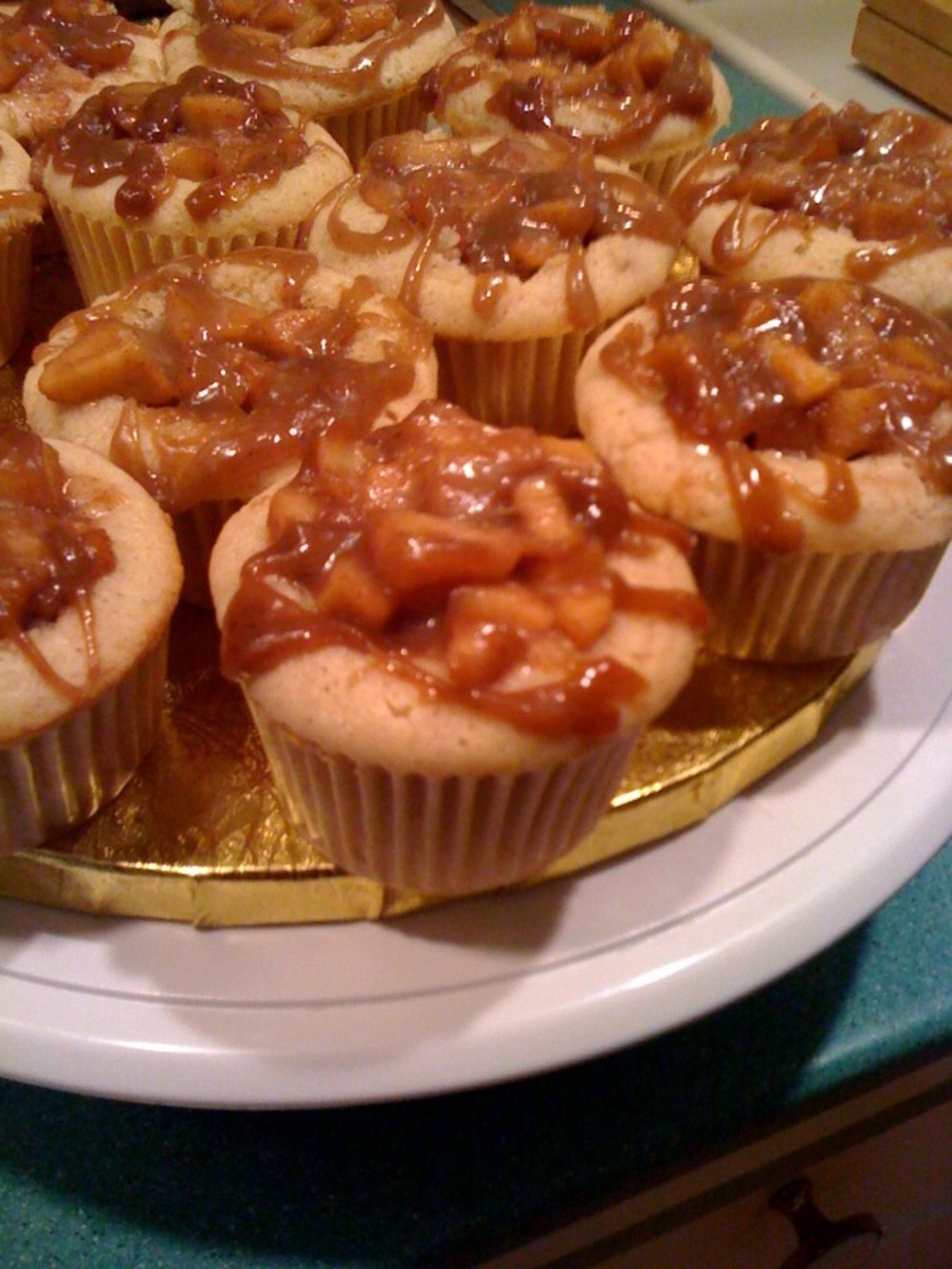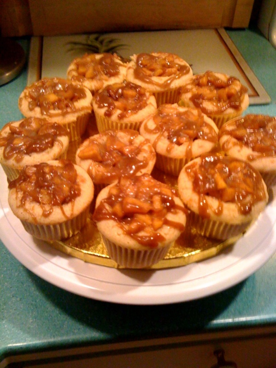 Vanilla cinnamon cupcake with homemade apple filling and caramel drizzle.