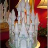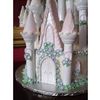 Two tier castle cake decorated with lavendar flowers and pink towers. Used Wilton Castle kit to make this cake.