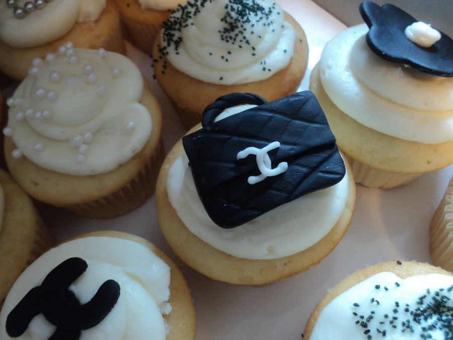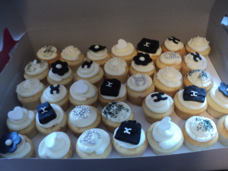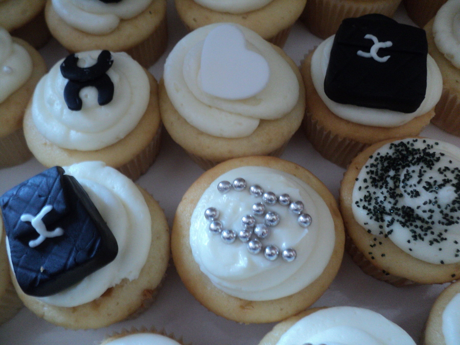 Chanel themed vanilla cupcakes with cream cheese icing..