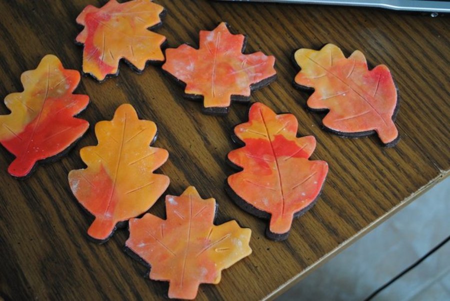 Saw the acorn cookies on here so I gave them a try....I like them. The leaves are covered with MMF. Made these for my son's harvest party at school.