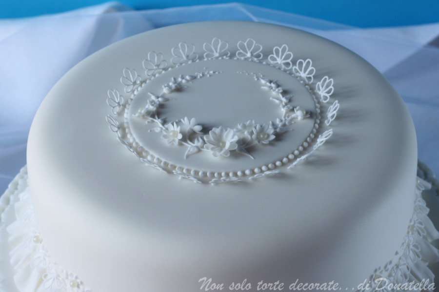 Royal Icing lace pieces, Embroidery, Garrett Frill. Modelling paste little flowers. TFL