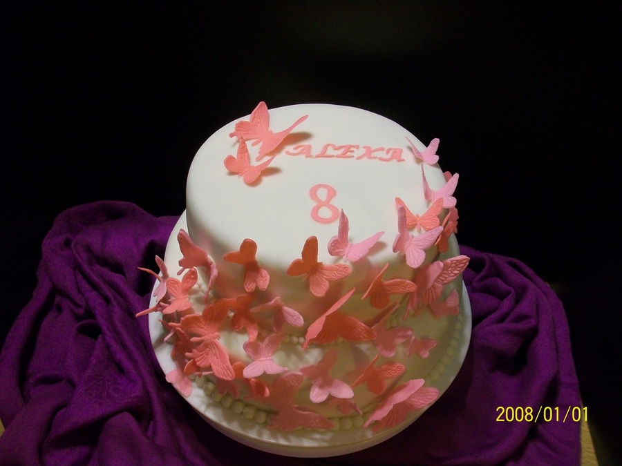all fondant last min. cake for my nice favoriye color pink and love butterfly