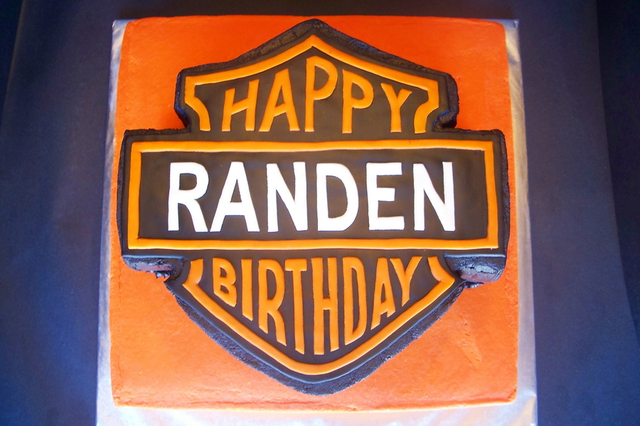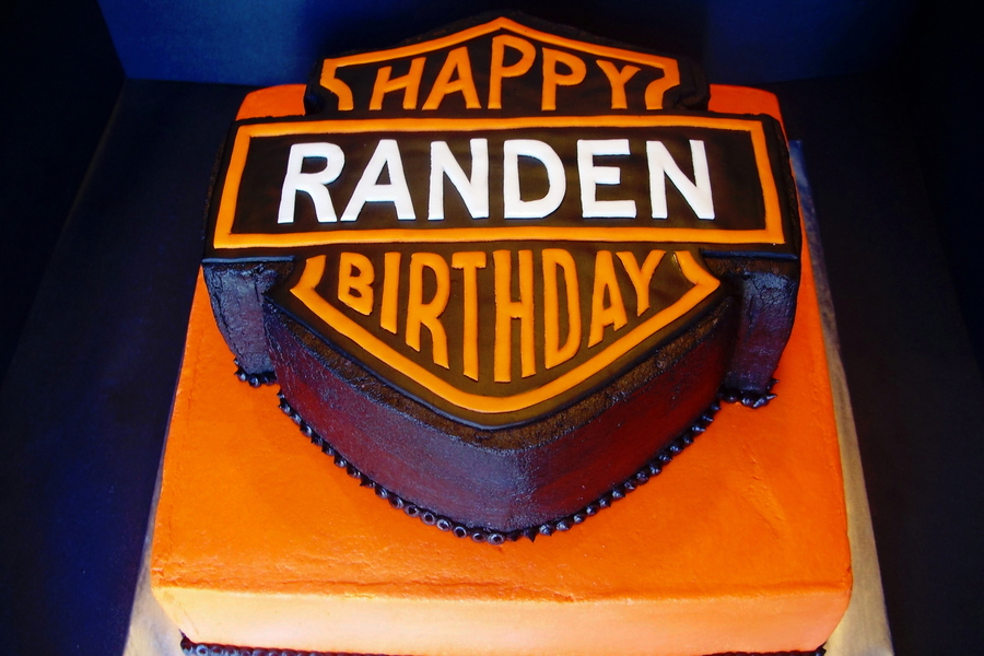 Birthday cake for my friend's husband, who drives and loves Harley's. Top tier is Chocolate cake with milk chocolate ganache filling. Bottom tier is WASC with strawberry filling. Both are iced in buttercream. Harley logo is all fondant. TFL!