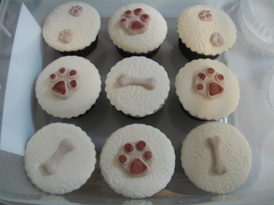 These were made for the local RSPCA cupcake day. they are white chocolate banana cake covered in ganache and fondant. Sorry for the bad pic, i was in a hurry :) thanks for looking