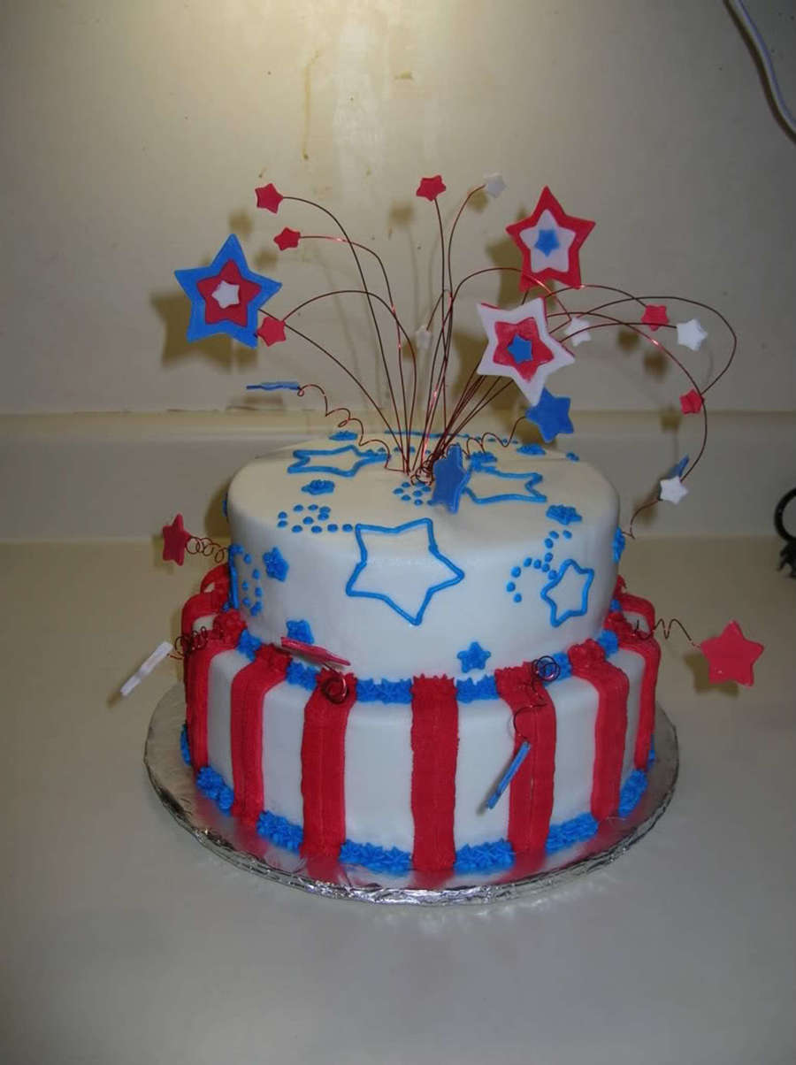 Buttercream with gumpaste stars. (Ignore my ugly walls we were re-doing the kitchen and had just taken the wall paper off...)