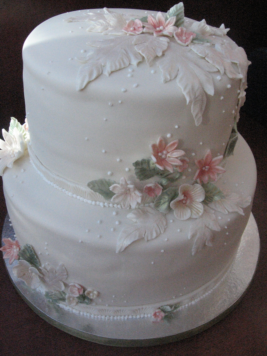 Ivory Fondant And Flowers Tiered Cake For 40Th Birthday