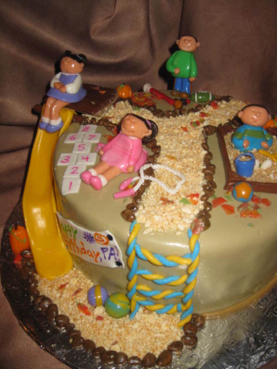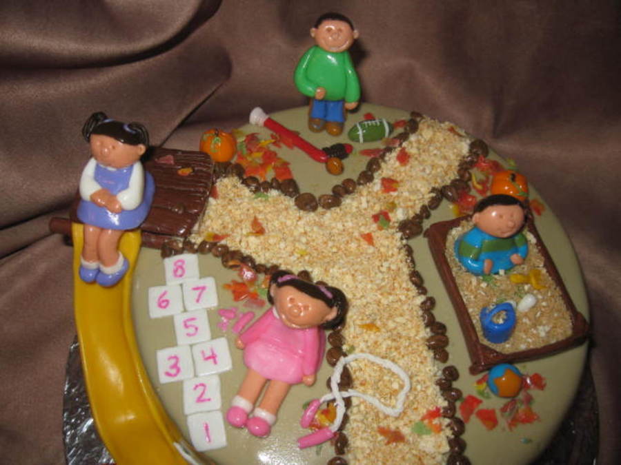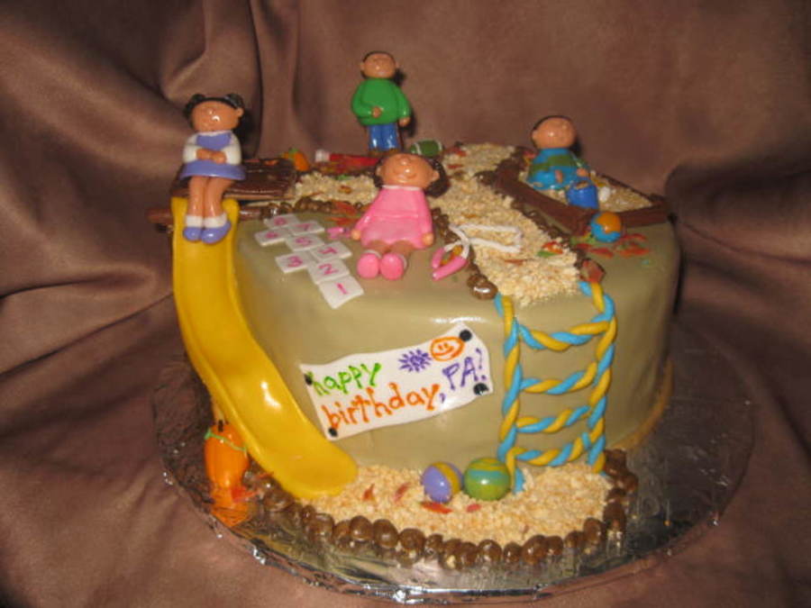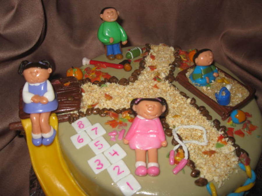 Vanilla cake with raspberry BC filling and MMF. All decorations made with MMF. Cake was for a Grandpa's birthday with his 4 grandkids playing at the park. Thanks to "coolbananas" for the inspiration! Also all the other CCer's playground cake! TFL!! :)