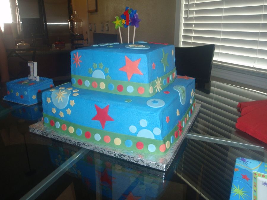 Made this cake for my son's first birthday to match the theme. Iced in buttercream with fondant accents. TFL!