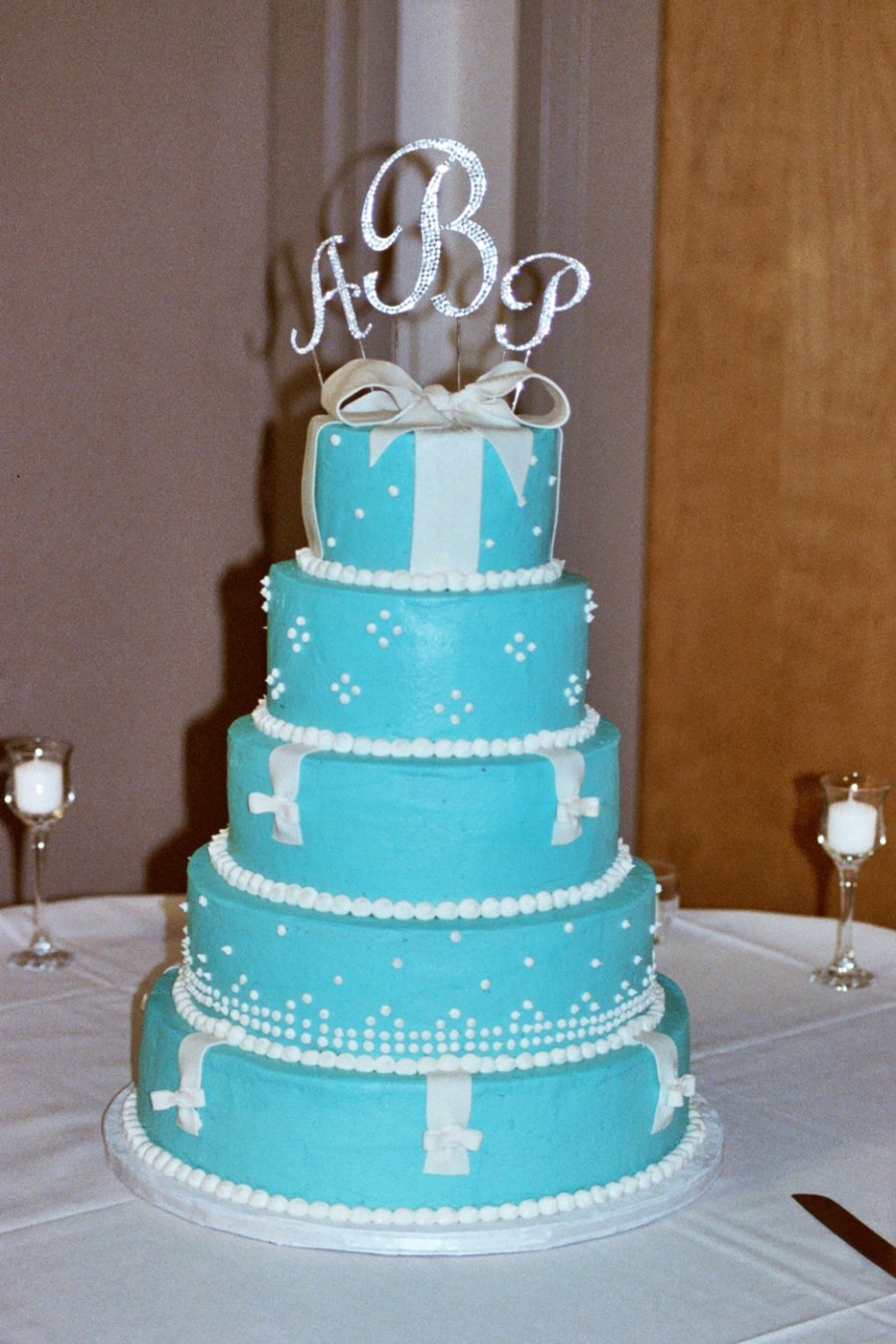 Tiffany blue wedding cake with white fondant bows