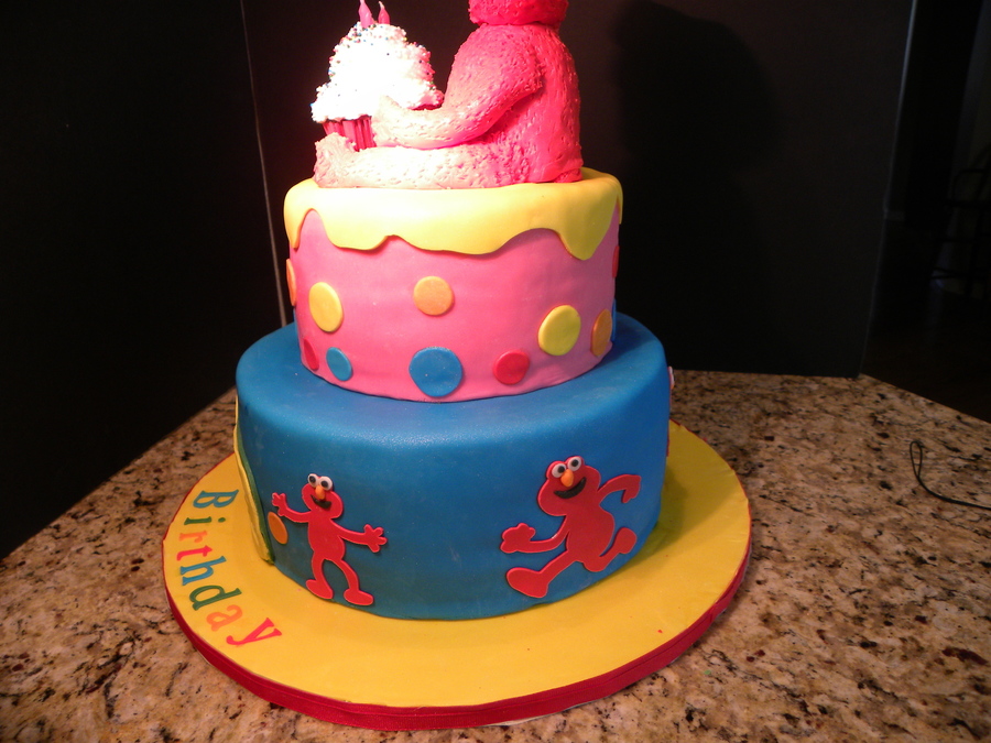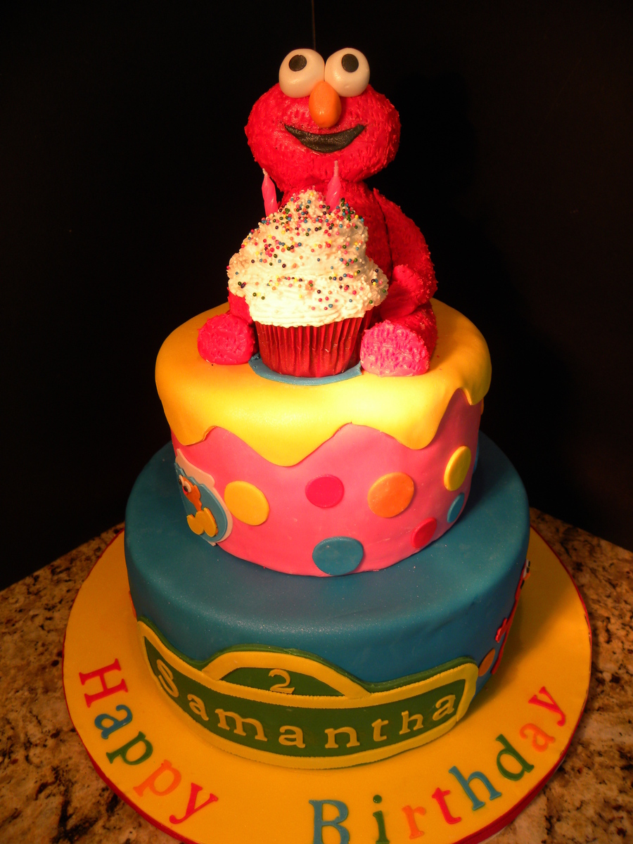 2 tier fondant covered cake. Elmo is made with Rkt. Elmo cutouts are made from fondant and cut out using the cricut cake. Thanks for looking!
