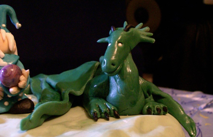 The figures were molded free-hand and were textured using frosting tips, and edible pearls.