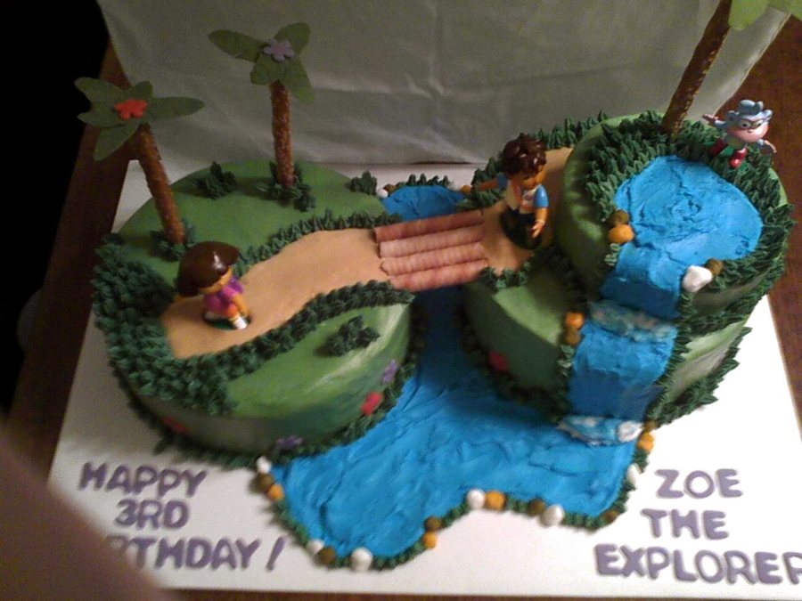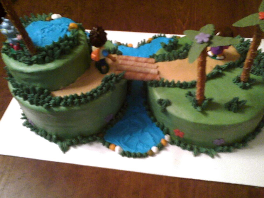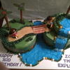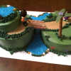 Used deco pack from wal-mart. Buttercream icing, fondant flowers, pretzel trees, and oreo stick bridge. One of my fave cakes.