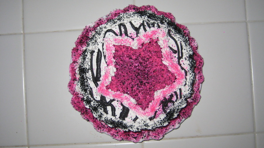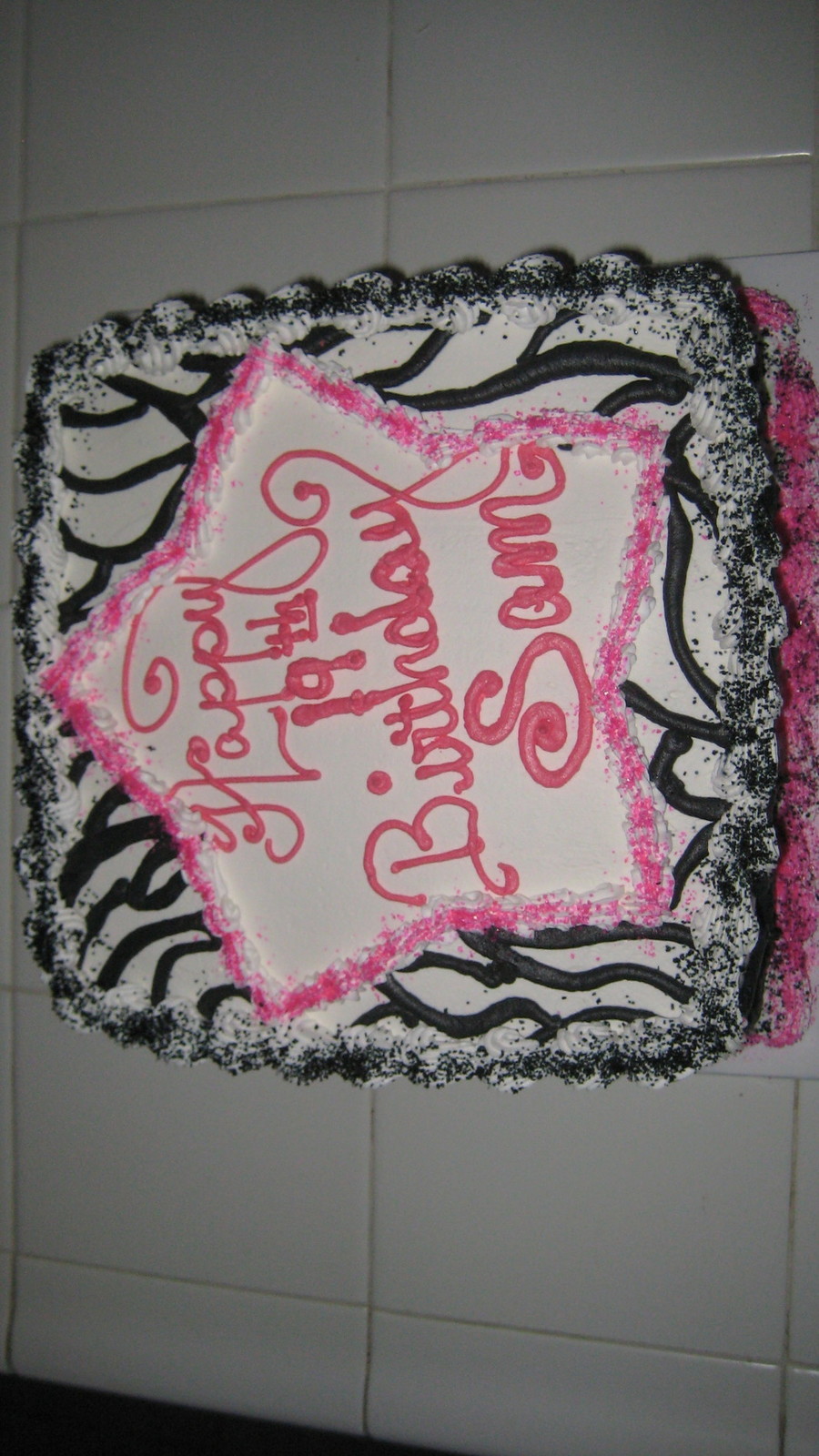 10 in square. Used pink sugar. Gluten free side cake that my niece helped decorate for her sister