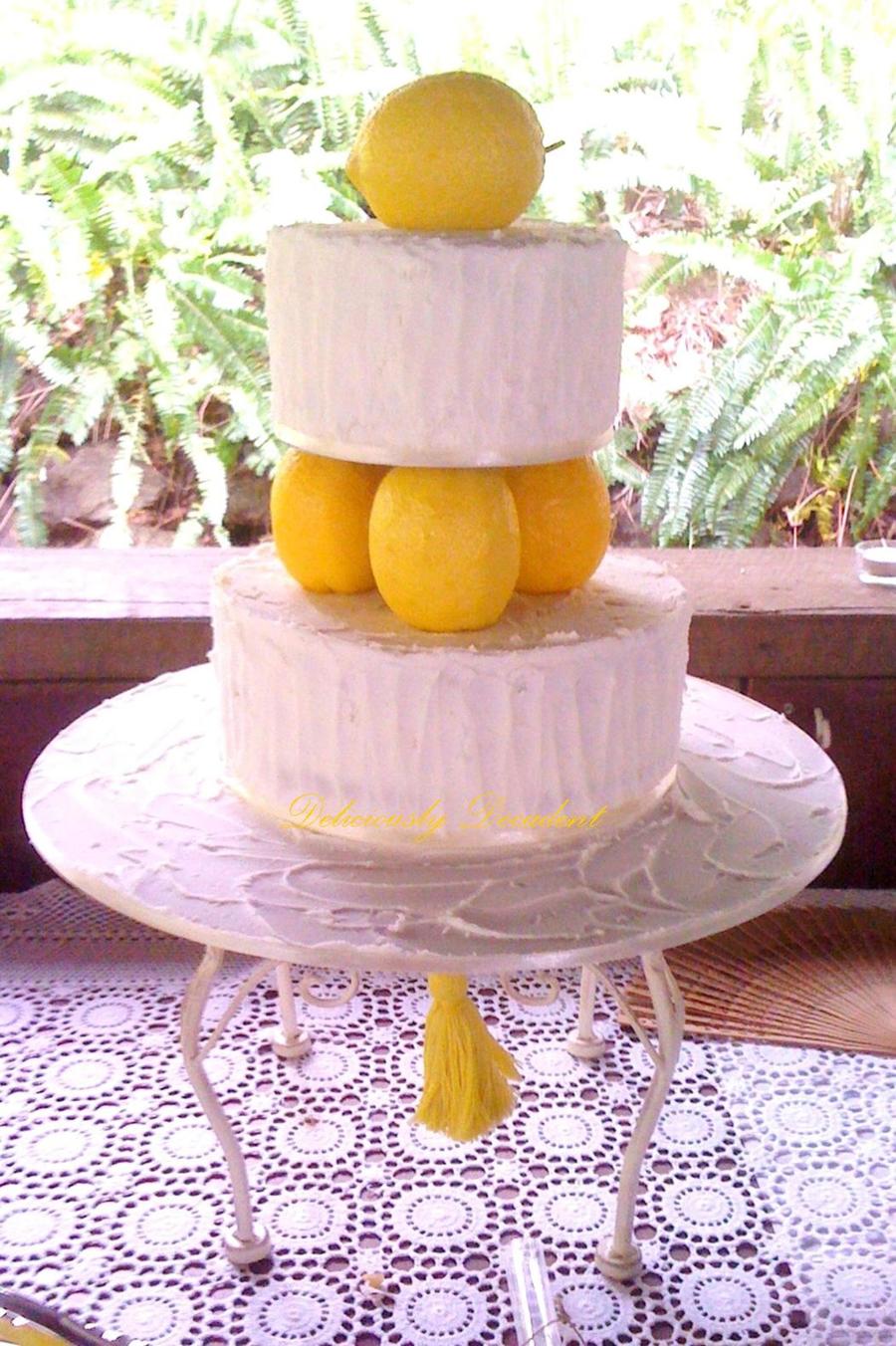 6"8" buttercream covred with real lemons as seperators part of a lemon themed desert buffet