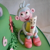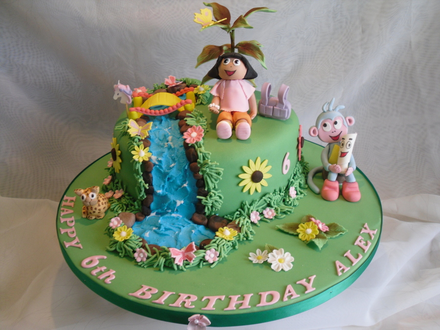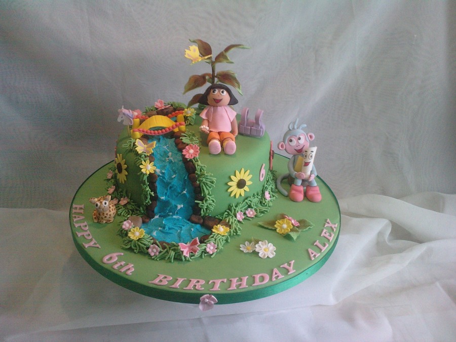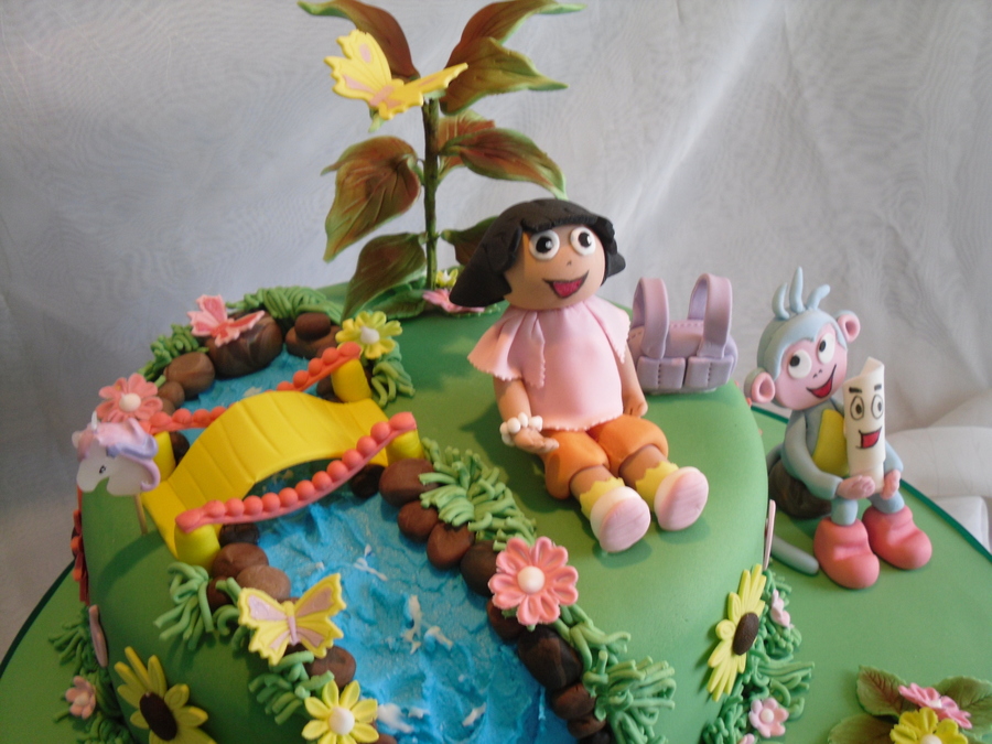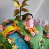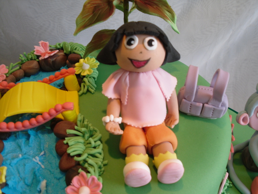 This was for a friends granddaughter, who since she was one has been mad on Dora. Everything was edible, except for the tree which I wired. IT was vanilla sponge with buttercream filling covered in fondant. the water was buttercream