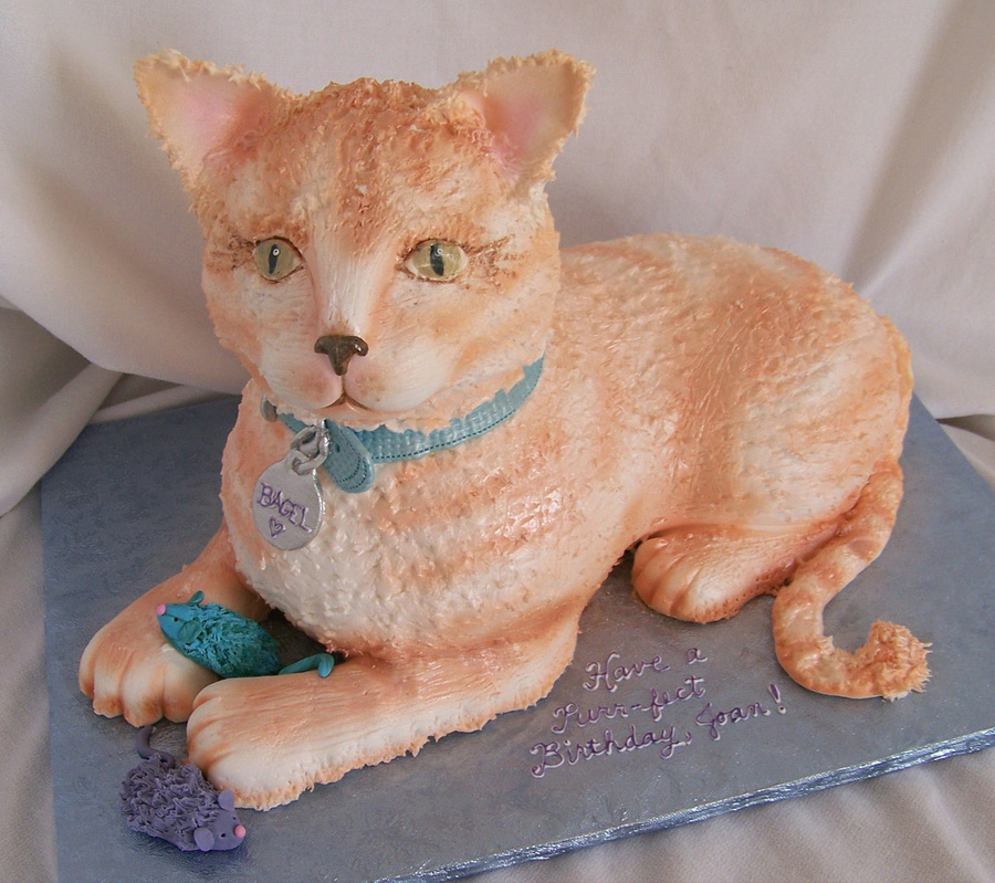 Was supposed to make this cat to match a white and light orange kitty...she gave me a very small photo so I looked up some other cats online to help. Body is cake...paws are icing....head is RKT.