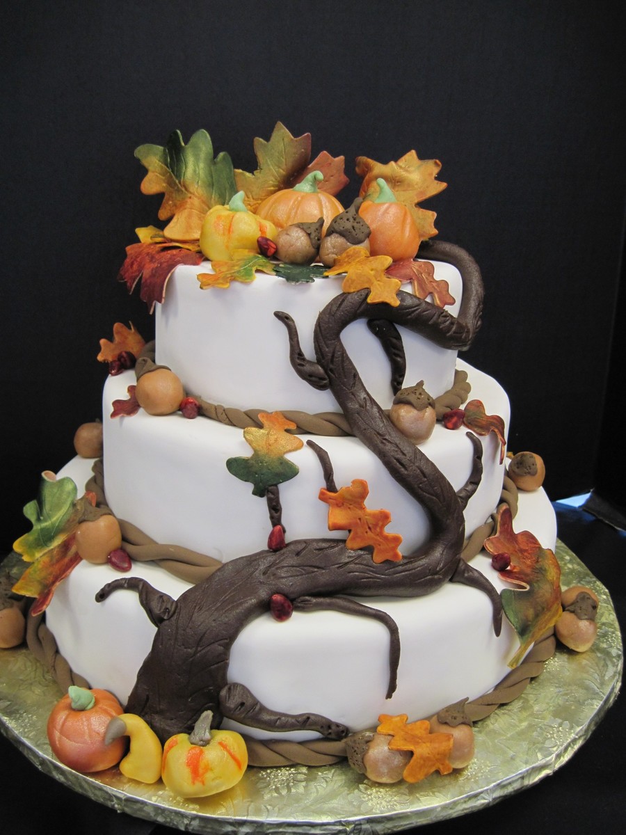 I am in culinary school and we got to make and design our own wedding cake. Thanks to all the beautiful cakes on here I ended up with one I was very proud of. 12-9-6 rounds marzipan tree, handpainted leaves