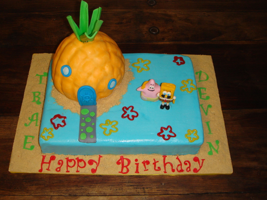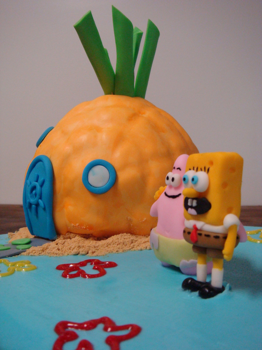 I had fun making this cake. The pineapple did not turn out exactly like I had pictured but I like it. I absolutely LOVE how sponge bob turned out. Cake is covered in buttercream, pineapple is RKT covered in fondant, sponge bob & patrick are gumpaste/fondant. Crushed graham crackers to look like sand. Thanks for looking