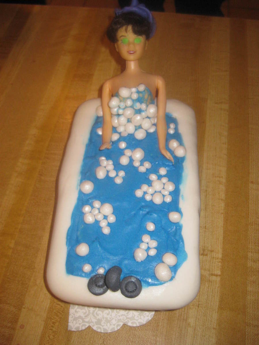 white cake covered in fondant and BC icing for the water and cucs on the eyes. .fondant bubbles and faucet. big cred to AmyBeth whose cake directly inspired me to make this!!