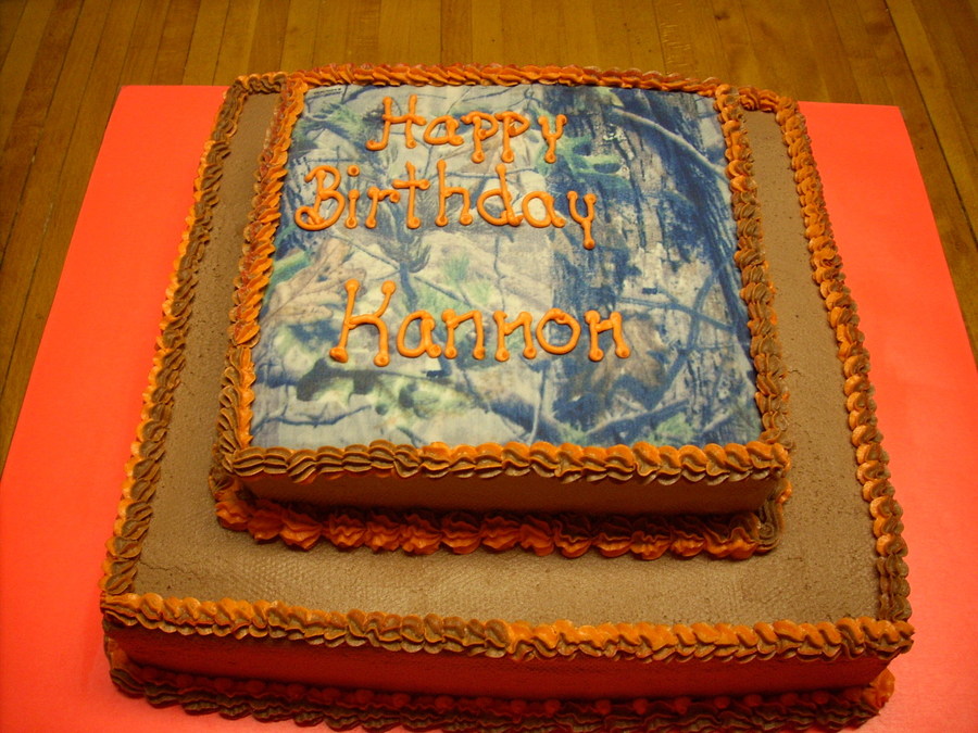 Real tree camo printed by our local grocery store b/c I can't do that!! Chocolate two tier cake!