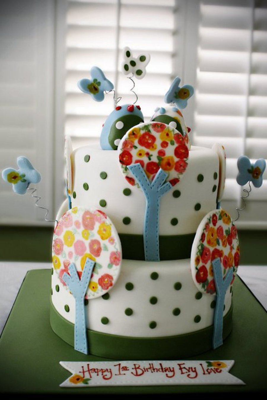 This is one of my favorites. It was based off of the nursery bedding, and was so fun to make. The trees are painted calico with airbrush color. TFL!